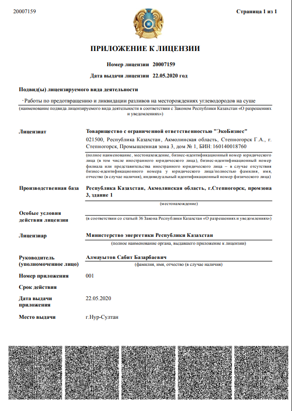 Все работы по утилизации производятся по установленным государственным стандартам на основе действующего Экологического кодекса Республики Казахстан.